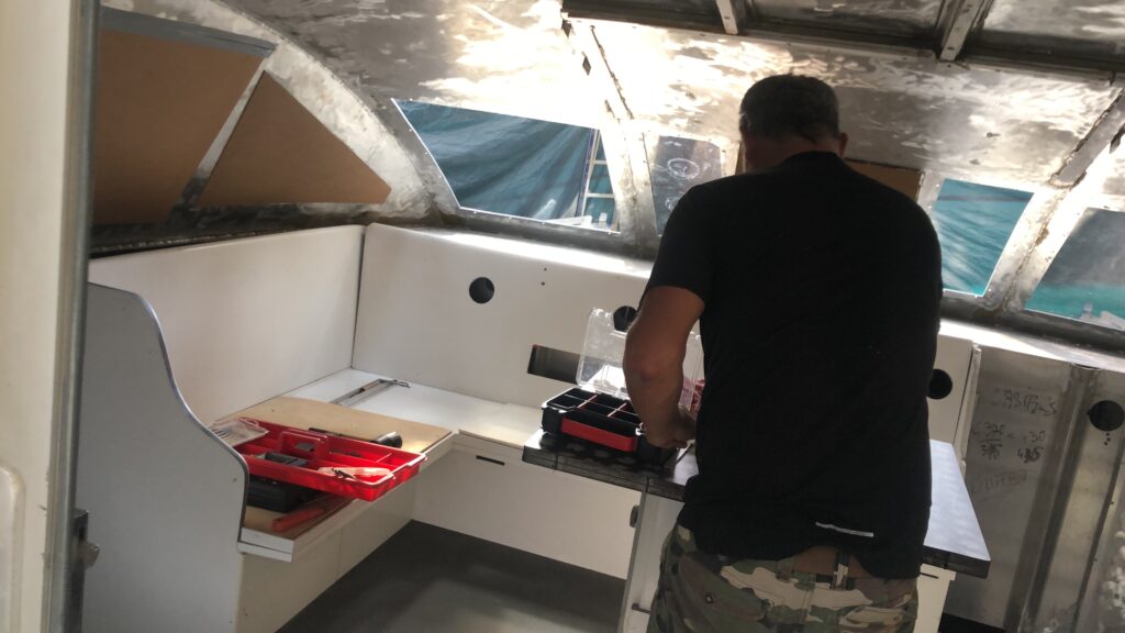 • L’intégralité des anciens aménagement ont finit à la décharge de Port Leucate. Après je ne sais plus combien de voyages à la décharge un des employés m’a dit : ” Mais quelle est la taille de votre bateau, ce doit être un yacht énorme … “,  j’étais du coup un peu embarrassé  surtout qu’à ce moment là c’était loin d’être terminé.